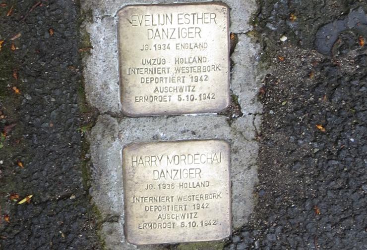 Stolpersteine für die Kinder Evelijn Esther und Harry Mordechai Danziger